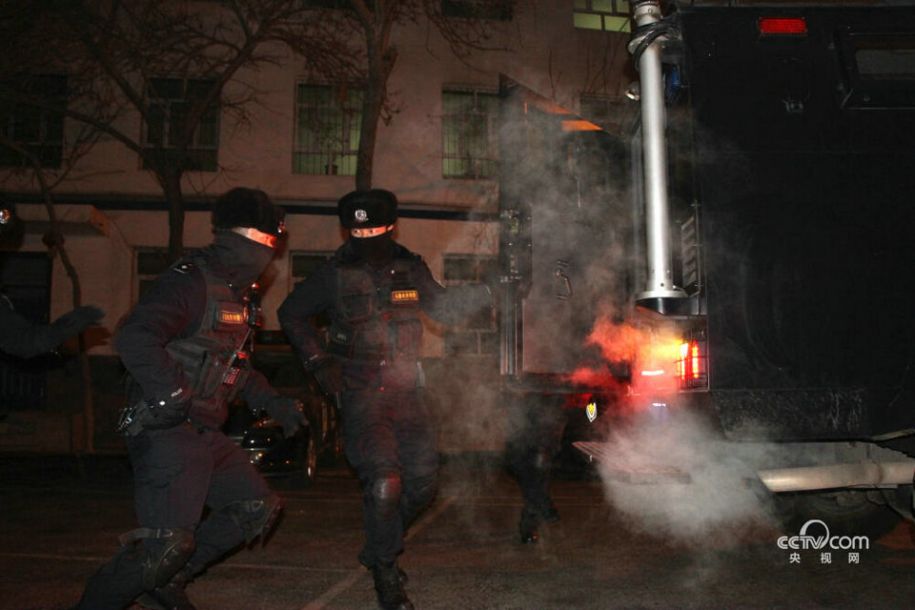 中队长包贺田安排好巡逻任务后,特警队员们整装准备巡逻。
