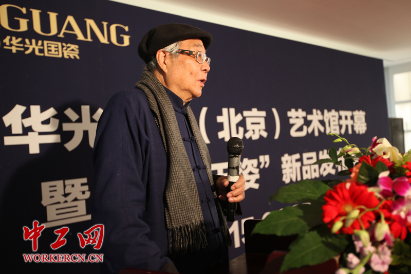 华光国瓷(北京)艺术馆开幕仪式上,我国陶瓷艺术大师张守智先生致辞。 中工网记者 李雪峰 摄