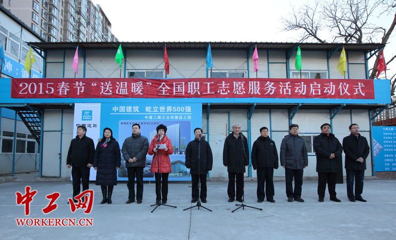 1月27日,中国志愿服务联合会职工委员会在北京举行2015年春节“送温暖”全国职工志愿服务活动启动仪式。春节临近,各地工会将组织广大职工志愿者根据能力和特长,为农民工和困难职工提供法律援助、医疗救助、就业指导、心理疏导等志愿服务。