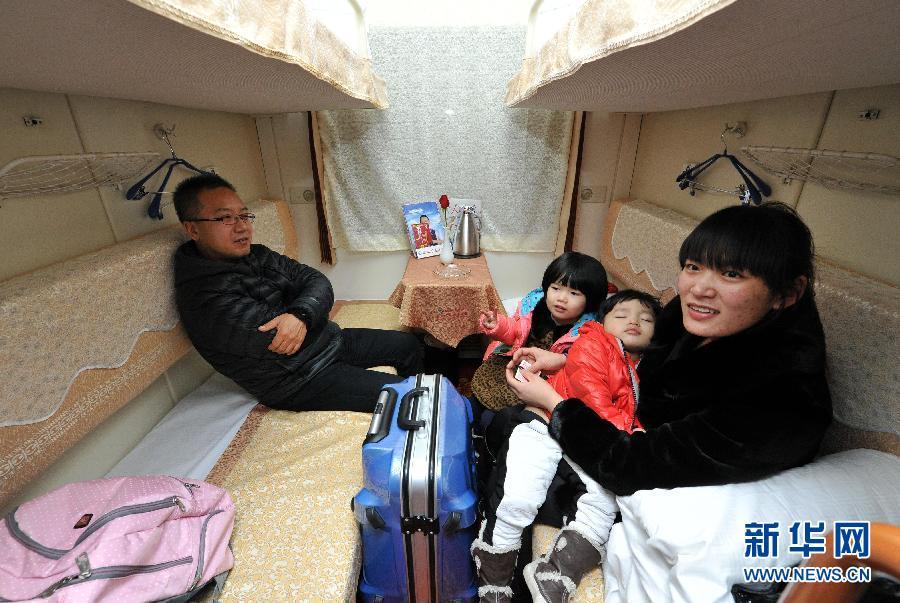 1月26日,旅客们在“丝路驿站——宁夏号”列车上等待发车。