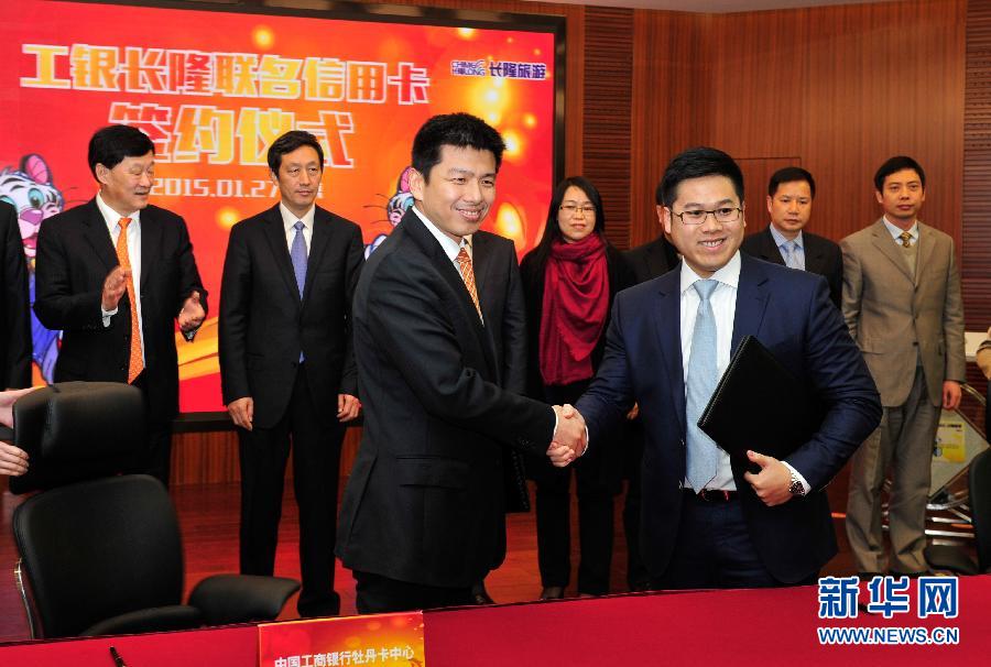 1月27日,工商银行代表与长隆集团代表在信用卡发行仪式上签约。当日,中国工商银行与长隆集团在北京正式宣布联合发行工银长隆联名信用卡。该卡是国内第一款主题公园联名信用卡,包括银联品牌及VISA品牌芯片卡,支持接触式与非接触式使用。据悉,该卡在香港和澳门同步首发。新华社记者 杨光 摄