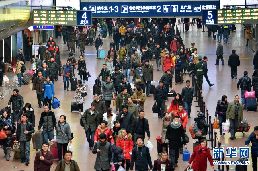 2015年春运大幕将于2月4日正式开启,持续至3月16日,为期40天。据交通运输部消息,预计2015年春运全国旅客发送量将达到28.07亿人次,比2014年增长3.4%。 新华社发(张文魁 摄)