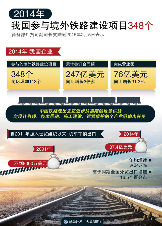 图表:我国2014年参与境外铁路建设项目348个 新华社发 大巢制图