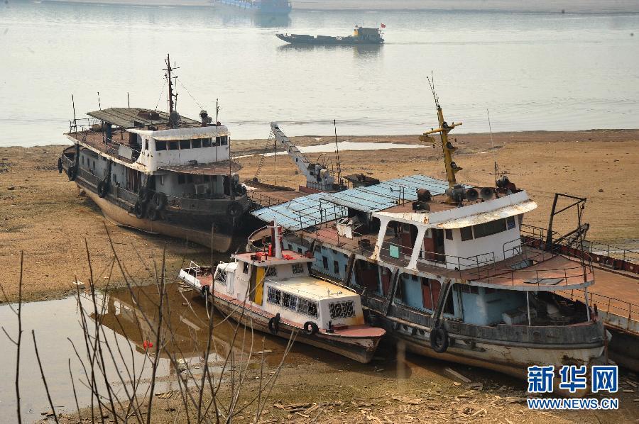 湘江湘阴段因枯水航道沿岸大面积河床裸露(2月11日摄)。 新华社记者 龙弘涛 摄 图片来源:新华网