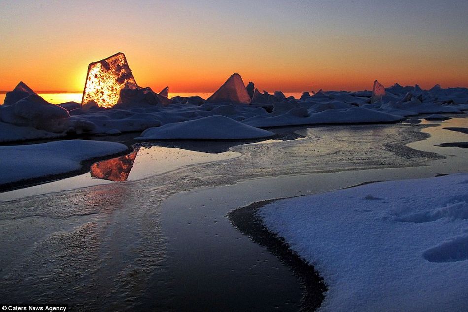 为了拍摄到完美的照片,Annie Degré-Blais经常在日落时分进行拍摄工作,因为只有在这个时候,“冰雕”才会显得更像珠宝。(网站截图)