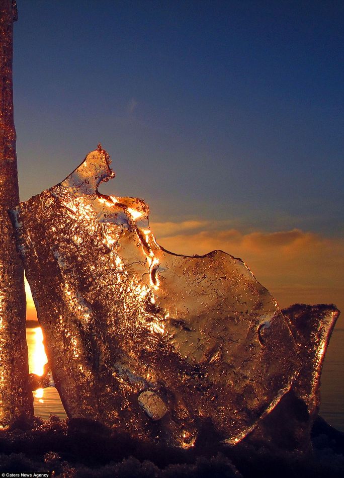 图中的这张Annie Degré-Blais的镜头捕捉到的“冰雕”在日落时分折射出金色的光芒,美不胜收。(网站截图)