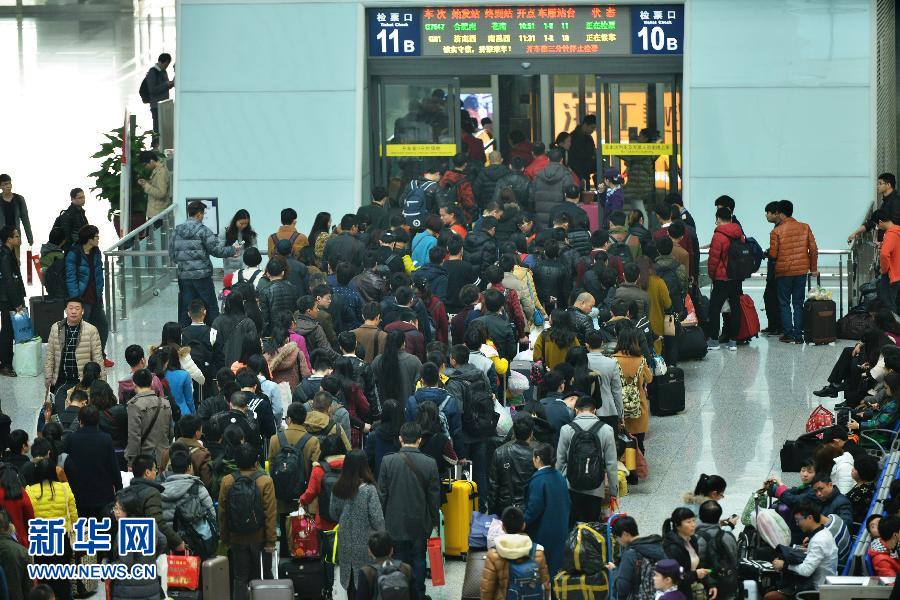 2月16日,旅客在铁路杭州东站的候车大厅候车。当日是农历大年二十八,全国春运进入节前返程高峰。根据全国道路、铁路、水运、民航综合数据看,16日全国春运返程将突破8000万人次。新华社发(龙巍 摄)