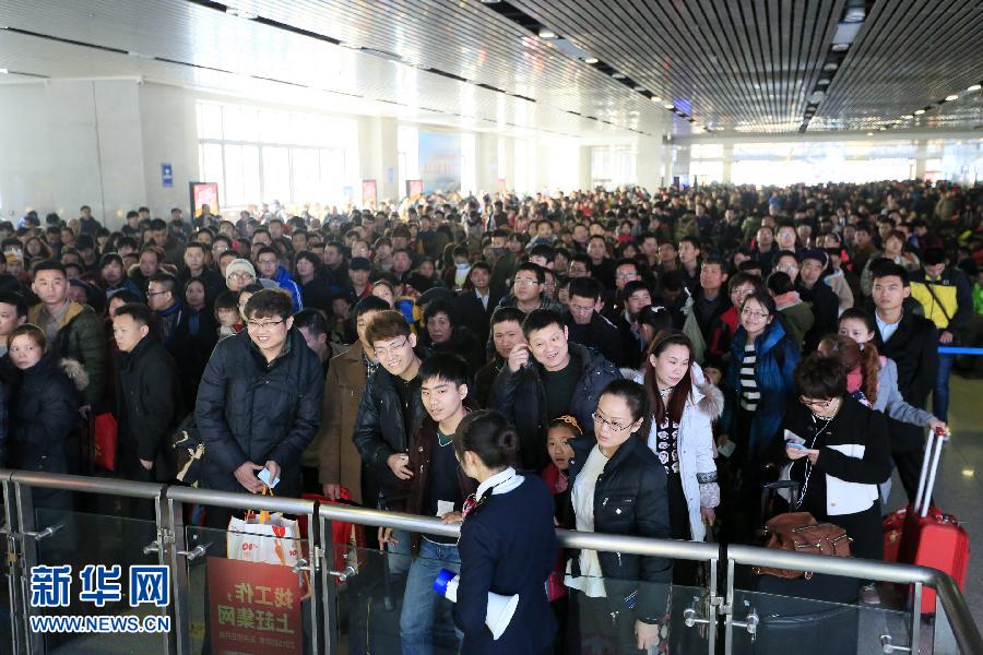2月16日,济南火车站等待检票的旅客排起长龙。当日是农历大年二十八,全国春运进入节前返程高峰。根据全国道路、铁路、水运、民航综合数据看,16日全国春运返程将突破8000万人次。新华社发(唐磊 摄)