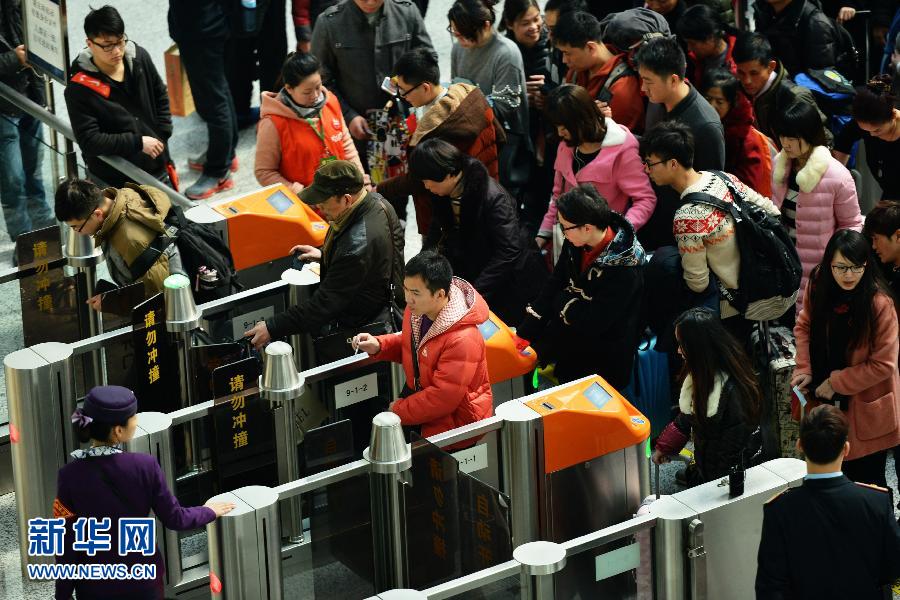 2月16日,旅客通过铁路杭州东站的自动检票口。当日是农历大年二十八,全国春运进入节前返程高峰。根据全国道路、铁路、水运、民航综合数据看,16日全国春运返程将突破8000万人次。新华社发(龙巍 摄)