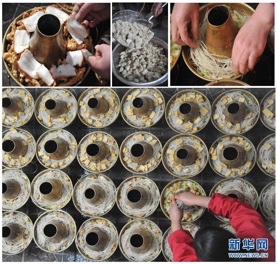 “捞玉”以豆腐为主料制作而成,寓意日进斗金,生意兴隆。羊年春节临近,思乡情切意真。人们做出拿手的饭菜,缓解家人旅途的劳累,宽慰游子漂泊的心。饭菜或繁或简,散发亲情绵绵。让我们围坐在家人身旁,品味那记忆深处的家乡味道,过一个团圆祥和的中国年。新华社发(房德华 摄)