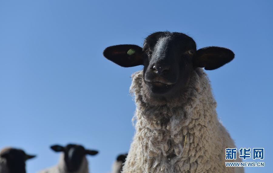 一只黑头杜泊羊在内蒙古乌兰察布市四子王旗境内的杜尔伯特草原上眺望远方(2015年2月16日摄)。 羊年到,吉祥到。冬去春暖,福临康安。骏马奔腾辞旧岁,三“羊”开泰贺新春。春节钟声即将敲响,幸福美满的喜悦洋溢在人们脸上。祖国各地喜气“羊”“羊”,庆佳节,过大年。 新华社发(王正 摄)