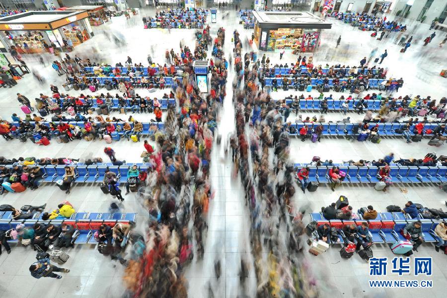 2月27日,旅客在长春火车站候车大厅排队验票乘车。当日,长春火车站迎来节后客流高峰。探亲返程、返校学生、外出务工等客流叠加,预计全天发送旅客8.4万人次。 新华社记者 张楠 摄