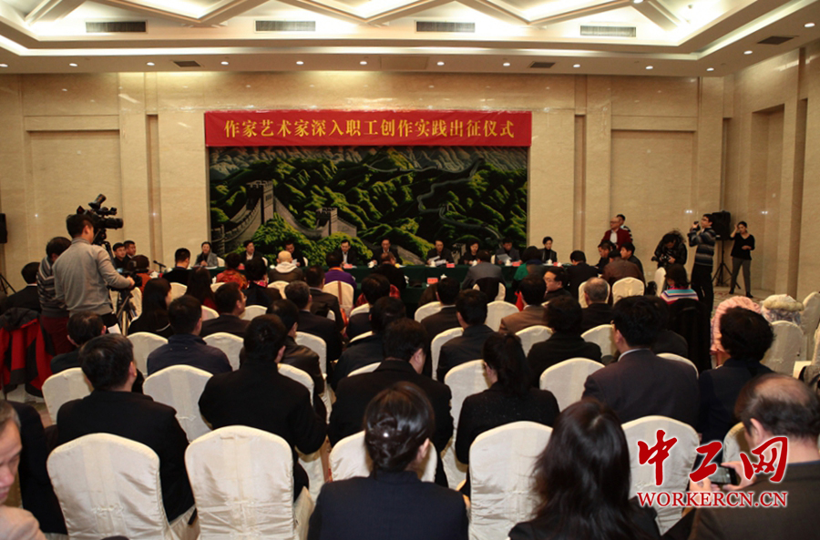 全国总工会27日下午在北京举行作家艺术家深入职工创作实践出征仪式。何建明、尹力、孟玲、梁秉堃、葛优、刘和刚、萨日娜、苏红等一批著名文艺工作者积极响应全总号召,表示拜职工为师、与职工交友,为职工创作更多更好的文艺作品,并为作家艺术家深入职工创作实践活动出征签名。全国总工会党组书记、副主席、书记处第一书记李玉赋出席仪式并讲话。  中工网记者 邱晔 摄