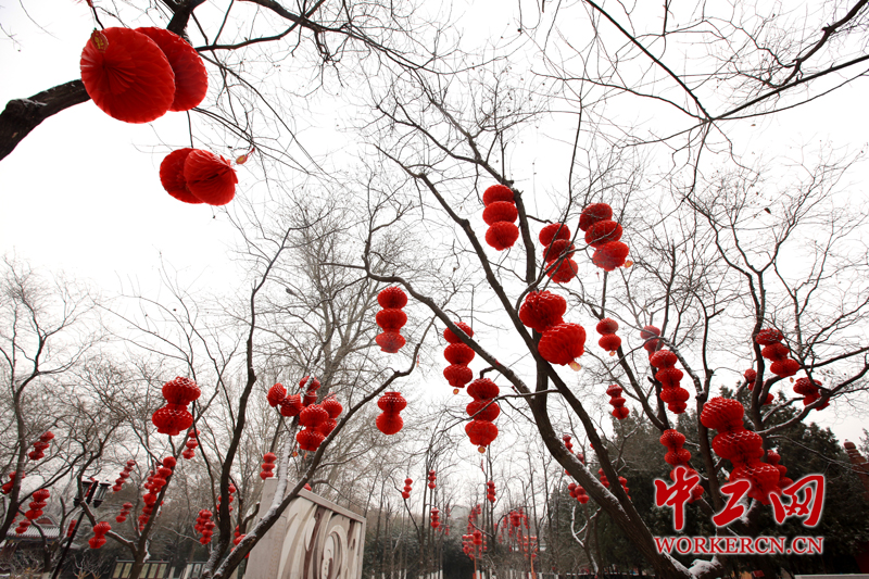 2月28日,北京迎来羊年第二场雪。春节刚过,雪后的地坛公园内一片喜庆景象。  中工网记者 李雪峰 摄