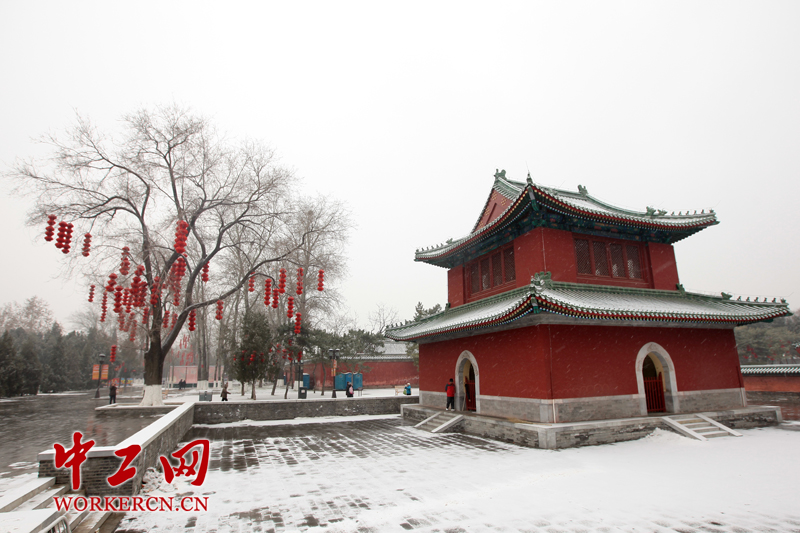 2月28日,北京迎来羊年第二场雪。春节刚过,雪后的地坛公园内一片喜庆景象。  中工网记者 李雪峰 摄