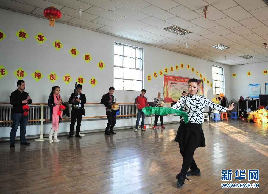3月5日,托克托县乌兰牧骑的演员们在排演节目。内蒙古呼和浩特市的托克托县是一座历史文化古城。战国时,赵武灵王在此建云中古城,清代更名为“托克托”。在托克托县,乌兰牧骑虽然人数不多,但是一直保持着优秀的文艺创作力与生命力,为群众带去丰富多彩的文艺表演活动。 3月3日,在河南省鹤壁市举行的第三届中国社火艺术节暨第十二届中国民间文艺“山花奖”评奖活动中,由托克托县乌兰牧骑排演的社火“双墙秧歌·老罕王进京”获得第三届中国社火艺术节金奖。在刚刚举办的托克托县元宵节群众文化活动中,县乌兰牧骑的演员们把这一剧目搬上舞台,让当地老百姓大饱眼福。新华社发(连振 摄)