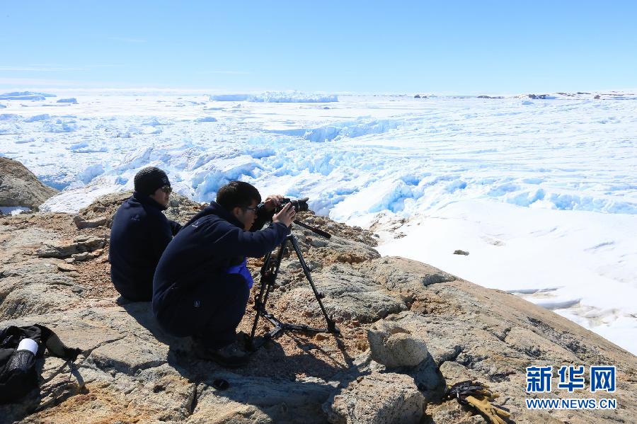 中山站越冬队员在距中山站区3公里处的高地进行南极冰盖流失观测(2月6日摄)。随着“雪龙”号结束中山站夏季科考任务启程返航,留守中山站的18位越冬队员也于日前展开为期9个月的越冬生活。他们将经受漫漫极夜的考验,忍受暴风雪、酷寒等常人难以想象的困难,开展高空大气物理观测、气象和海冰观测以及验潮等科考项目。近日,记者用镜头记录下他们在中山站的一些科研活动和生活。新华社记者 白阳 摄