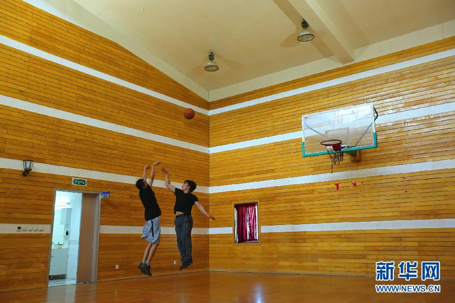 科考队员在中山站体育馆打篮球(2月6日摄)。随着“雪龙”号结束中山站夏季科考任务启程返航,留守中山站的18位越冬队员也于日前展开为期9个月的越冬生活。他们将经受漫漫极夜的考验,忍受暴风雪、酷寒等常人难以想象的困难,开展高空大气物理观测、气象和海冰观测以及验潮等科考项目。近日,记者用镜头记录下他们在中山站的一些科研活动和生活。新华社记者 白阳 摄