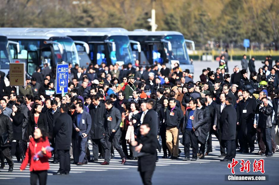 3月9日下午,全国政协十二届三次会议举行第二次全体会议。各界委员步入会场。 中新社发 翟羽佳 摄