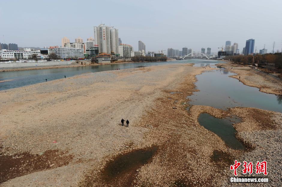 3月9日,兰州市民在裸露的黄河河床上休闲散步、捡拾黄河奇石。近日,黄河兰州段现大片裸露河床。中新社发 杨艳敏 摄