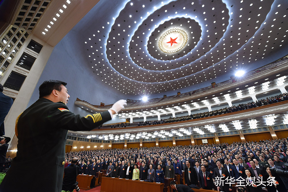 全国政协委员起立唱国歌。 新华社记者李学仁摄
