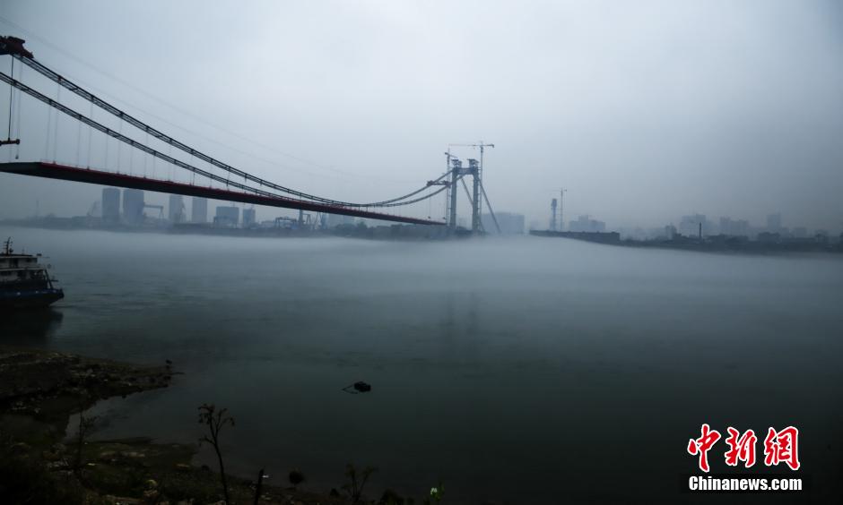 2015年4月1日,湖北宜昌市葛洲坝至至喜长江大桥江段出现罕见水雾气象,美若仙境。中新社发 刘蛟 摄