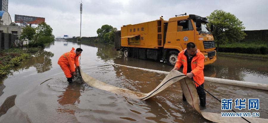 4月7日,市政人员在长沙亚大路积水路段开展排涝工作。当日,湖南长沙遭遇暴雨袭击,城区多处出现严重内涝,部分街道成“泽国”,一些机动车路过积水路段因熄火抛锚被水淹。湖南省气象台预计,未来一周长沙持续降温降雨,局地将出现雷暴、短时暴雨等对流性天气。新华社记者 龙弘涛 摄