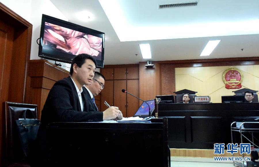 4月15日,在济南市市中区法院庭审现场,原告陈超(左)在观看被告提供的视频证据。当日,全国首例“专车案”——济南市民陈超诉济南市城市公共客运管理服务中心行政处罚一案,在济南市市中区人民法院第二审判庭公开开庭审理。 2015年1月7日,使用滴滴专车软件在济南西站送客的陈超,被济南客运管理中心的执法人员认定为非法运营,罚款两万元。陈超向济南市市中区人民法院递交了起诉状,要求济南客运管理中心撤销处罚。新华社记者 徐速绘 摄