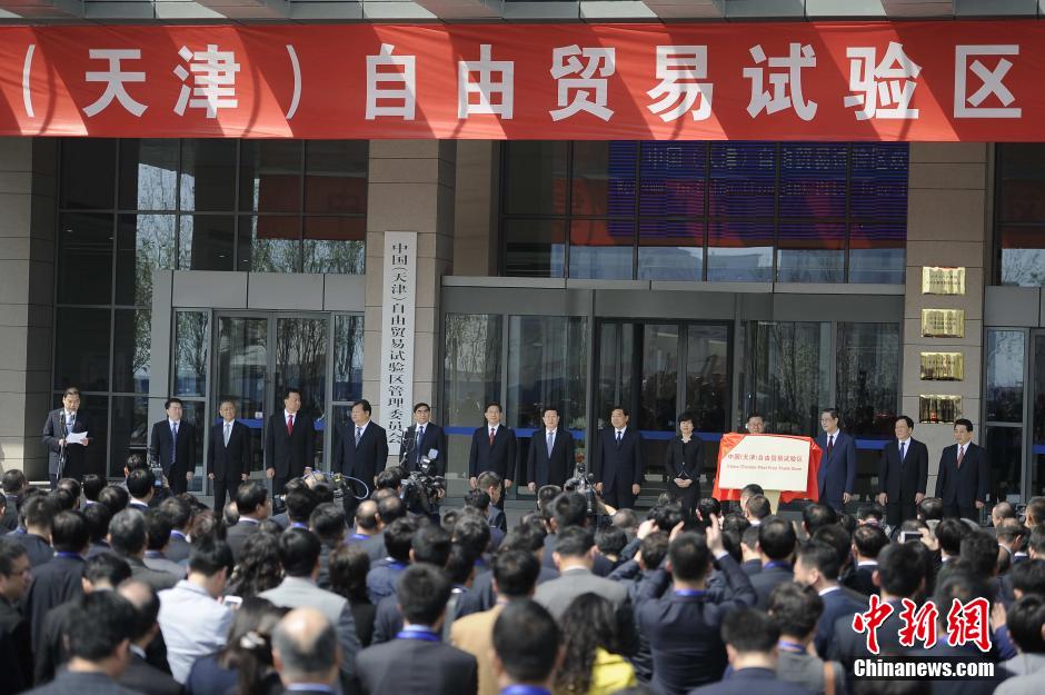 4月21日,中国(天津)自由贸易试验区举行挂牌仪式,此举标志着天津自贸区正式启动。中新社发 佟郁 摄