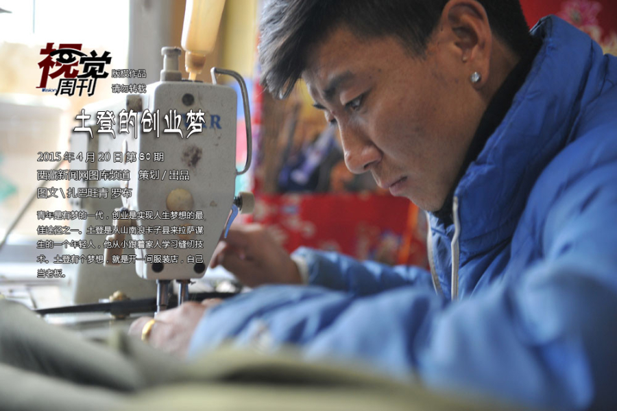 青年是有梦的一代,创业是实现人生梦想的最佳途径之一。土登是从山南浪卡子县来拉萨谋业的一个年轻人,他从小跟着家人学习缝纫技术。土登有个梦想,就是开一间服装店,自己当老板。