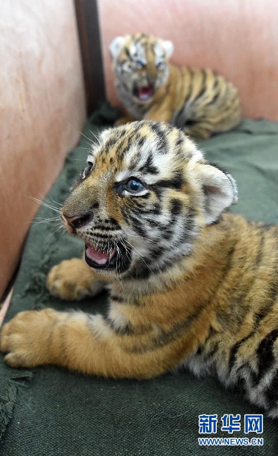 5月6日,两只东北虎“萌娃”在“保温箱”内休息。从4月开始,东北虎人工饲养繁育基地——黑龙江东北虎林园逐步进入东北虎繁育高峰,目前已诞下今年首批20余只东北虎“萌娃”。新生的小东北虎状态良好,最大的已经满月。黑龙江东北虎林园于1986年建立,从建立之初的8只种虎繁育至今,园内的活体东北虎已达千余只。 新华社记者王建威摄