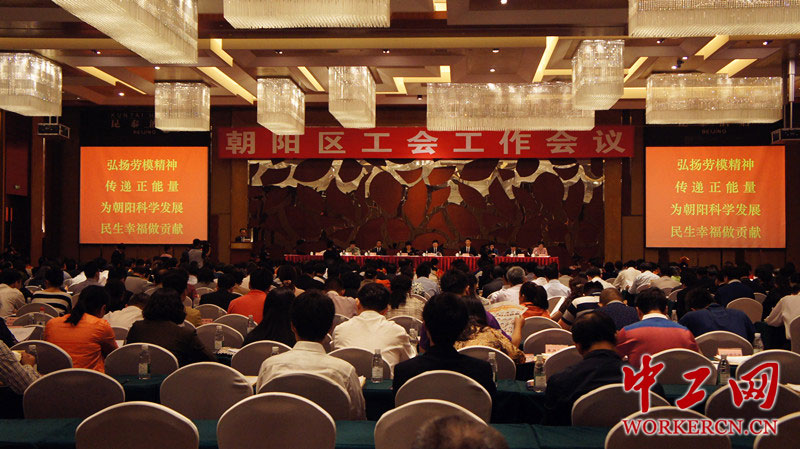 2015年5月13日,朝阳区工会工作会议在望京昆泰酒店召开。市总工会党组书记、副主席曾繁新,区委书记程连元参加会议并做重要讲话。会议由区长吴桂英主持。区政协主席谢莹,区委副书记、政法委书记陈宏志,区委常委、统战部长、区直机关工委书记马继业,区委常委、武装部政委史连雪,副区长黄晓伟出席会议。中工网记者 葛姗 摄