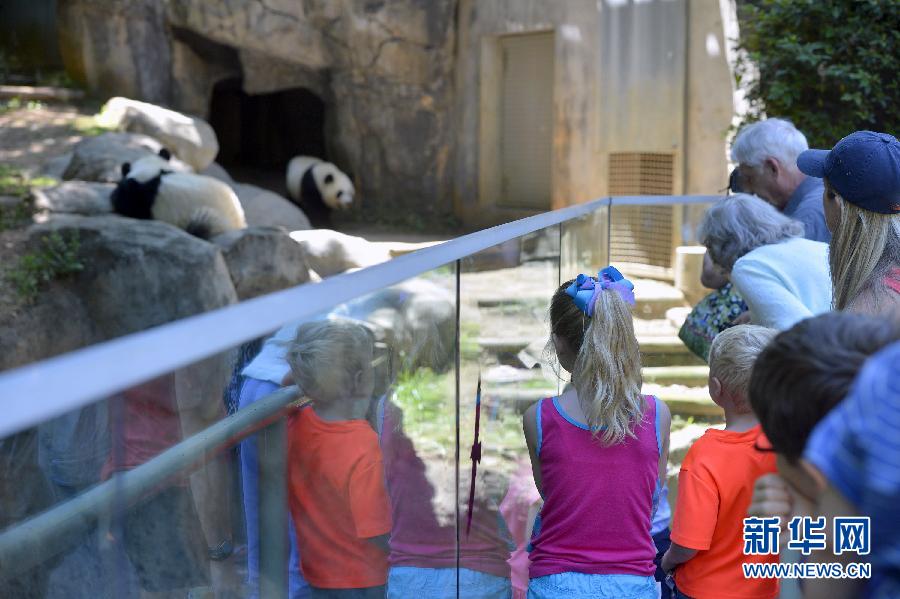 5月22日,孩子们在亚特兰大动物园参观大熊猫“美轮”和“美奂”。生活在美国亚特兰大动物园的大熊猫双胞胎姐妹“美轮”和“美奂”今年2月成功断奶,并将于7月迎来两周岁生日。这对动物园内风头最劲的“大明星”由旅美大熊猫“伦伦”所生,是美国首对成活大熊猫双胞胎,并由美国民众投票选出名字。新华社记者王雷摄