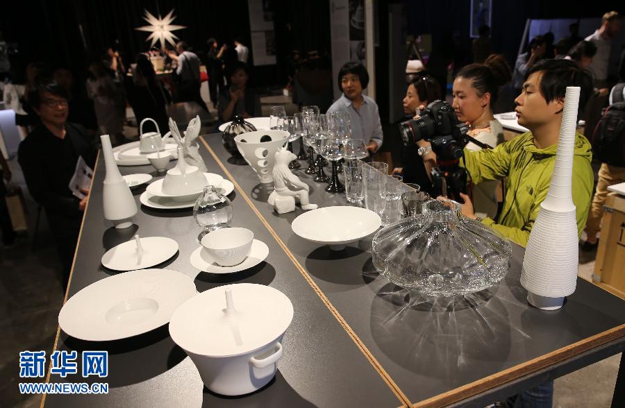 5月22日,观众在瓷器和玻璃制品展区旁驻足。当日,德国手工制造设计艺术展在上海叠·UP美术馆拉开帷幕,150家来自德国的顶级手工制造厂商集中展示了家居、精工、艺术品等类别逾3000件展品。据介绍,该展览在全球15个城市巡回展出,上海是第三站。新华社记者 裴鑫 摄