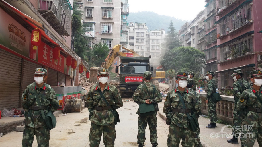 106名消防官兵,44名武警水电官兵现场作业;230名武警部队官兵维护内场秩序;600名公安干警维护外围秩序。云岩区200名干部连夜作好群众工作。