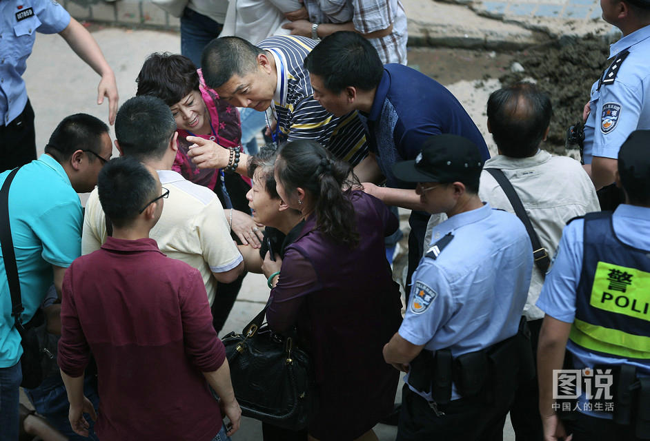 5月20日下午3点,现场工作人员和群众安慰被掩埋者家属,试图稳定受灾居民情绪。
