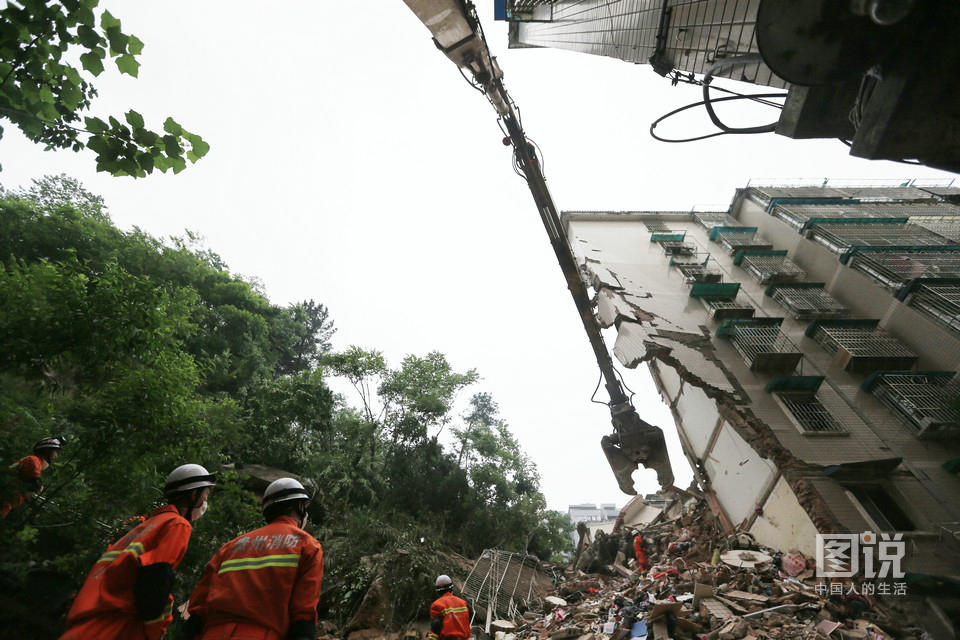 截至5月22日下午,现场已累计完成建筑渣土外运30车次,1975立方米(上午625平方米)。在第二作业面,开展山体滑坡现场边坡混凝土块破碎排险工作。22日投入挖掘机5台,自御车10台。图为救援现场。