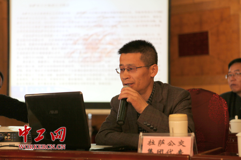 图为拉萨公交集团副总经理、公交运营公司总经理苟明平发言
