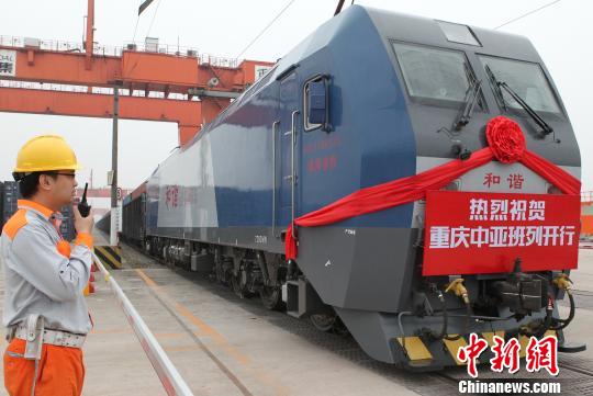 图为重庆中亚班列在沙坪坝区团结村中心站整装待发。周毅 摄