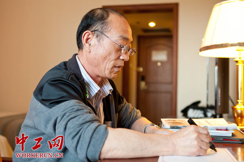 中铁一局注重为广大专业技术人员成长提供平台,培养了一大批优秀职工。图为中铁一局电务公司高级技师、全国劳动模范窦铁成。2009年9月,窦铁成当选100位新中国成立以来感动中国人物;2010年,窦铁成被评为全国劳动模范;2012年,他当选为中国共产党十八大代表;2015年,窦铁成作为12名特邀劳模代表之一参加了在人民大会堂举行的庆祝“五一”国际劳动节暨表彰全国劳动模范和先进工作者大会。 中工网记者 李雪峰 摄