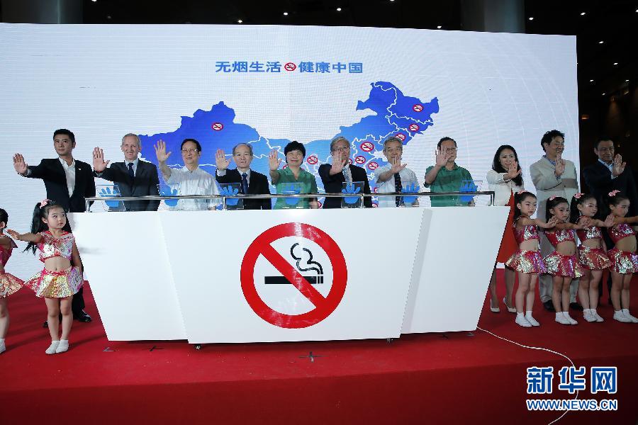 5月31日,在北京国家体育场(鸟巢)活动现场,嘉宾共同启动“健康中国行——2015年度无烟生活主题宣传教育活动”。当日是第28个世界无烟日,由国家卫生计生委、中央文明办、全国爱卫办、教育部、新闻出版广电总局、共青团中央、中国科协和北京市人民政府8部门共同主办,中国健康教育中心、中国疾病预防控制中心和北京市卫生计生委承办的2015年世界无烟日暨《北京市控制吸烟条例》实施宣传活动在北京国家体育场(鸟巢)举行。6月1日,被称为“史上最严控烟令”的《北京市控制吸烟条例》将正式实施。新华社记者 沈伯韩摄