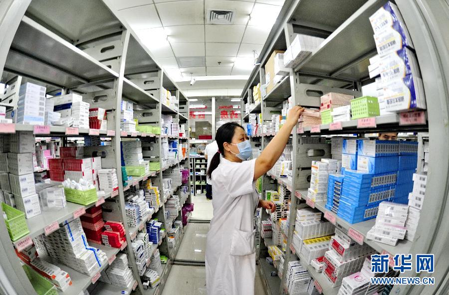 河北省沧州市中心医院工作人员在药房内为患者取药(5月31日摄)。根据国家发改委等部门《关于印发推进药品价格改革意见的通知》要求,6月1日起,我国取消绝大部分药品政府定价,完善药品采购机制,发挥医保控费作用,药品实际交易价格主要由市场竞争形成。新华社记者牟宇 摄