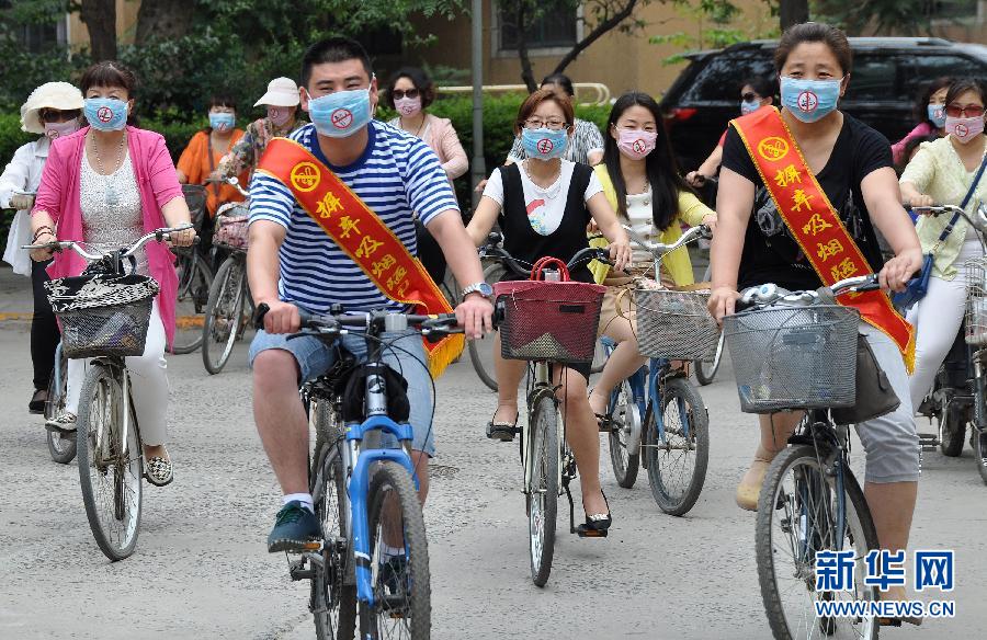 5月29日,山东聊城大学的大学生在校园内进行“快闪”表演,宣传戒烟。今年5月31日是世界卫生组织发起的第28个世界无烟日,主题是“制止烟草制品非法贸易”。 新华社发(孙杨 摄)