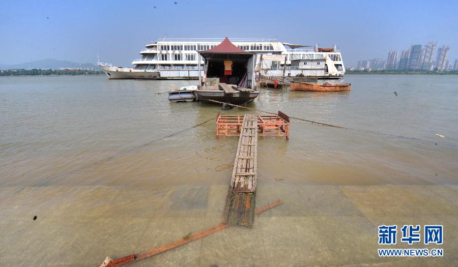 6月5日,长沙一处轮船停靠点被江水淹没,船主搭建木板供人员行走。连日来,受强降雨天气影响,湘江水位持续上涨。长沙水文站监测数据显示,截至6月5日8时,湘江长沙段水位上涨至31.06米,较前日上涨了0.12米,远高于26.35米的湘江千吨级航道设计水位。目前,当地相关部门正严密监控水情变化,确保汛期安全。新华社记者 龙弘涛 摄