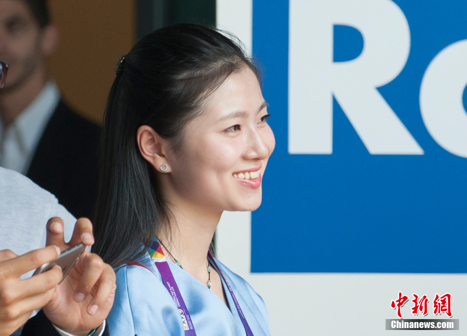 当地时间6月8日,意大利,2015米兰世博会迎来中国国家馆日,活动中一位清秀美女在人群中格外引人注目。 中新网记者 李卿 摄