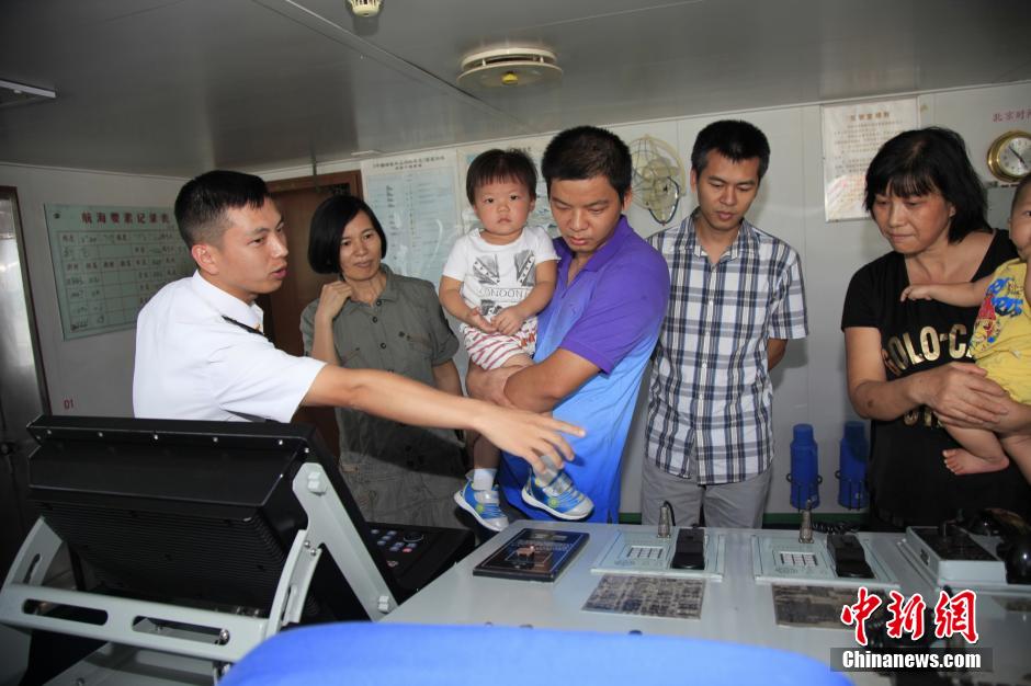 图为华人华侨登上“竺可桢”船驾驶室参观。 中新社发 杨新明 摄