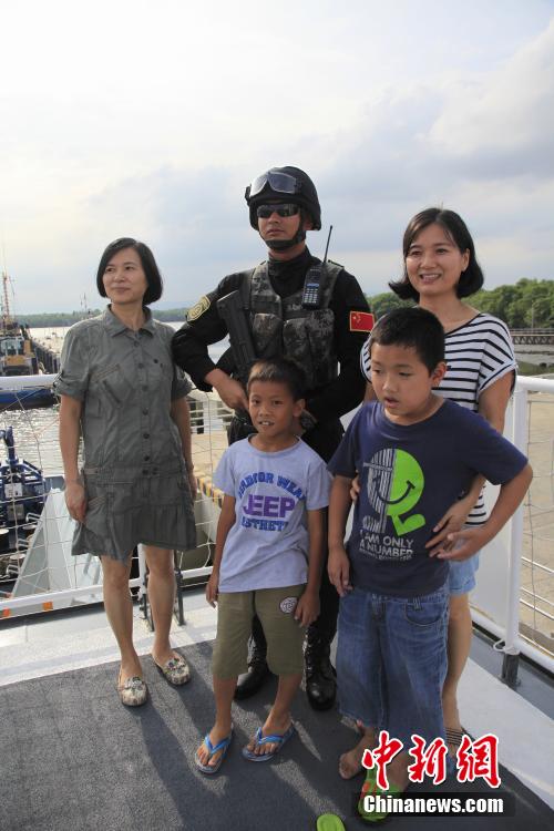 图为华人华侨与竺可桢船官兵合影。 中新社发 杨新明 摄