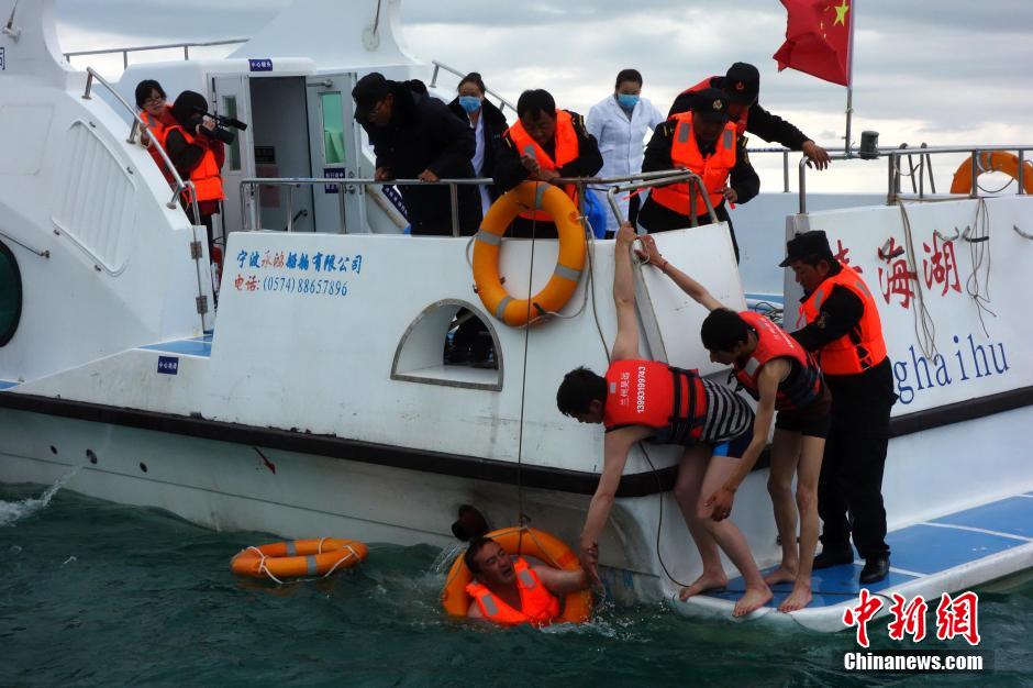 图为医疗救护船对落水“游客”进行紧急救援。赵凛松 摄