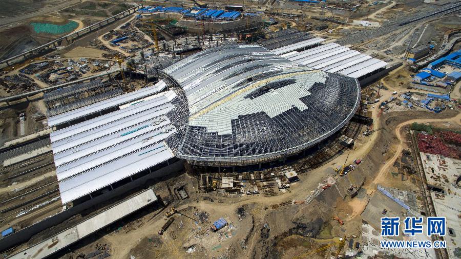 建设中的乌鲁木齐高铁站(5月27日摄)。 新华社航拍小组摄