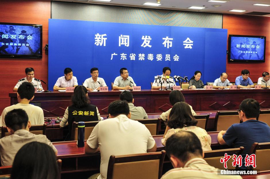 6月24日,广东禁毒委员会报称,今年1至5月,全省侦破毒品犯罪案件9507起,抓获犯罪嫌疑人10646名;缴获各类毒品9.2吨;捣毁制毒场点105个,打掉制贩毒团伙467个。图为新闻发布会现场。中新社发 陈骥旻 摄